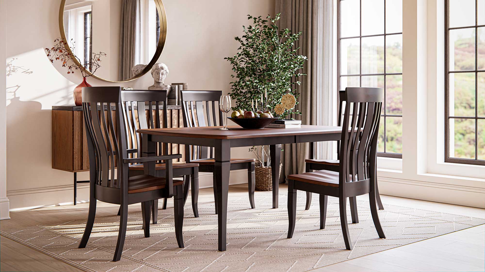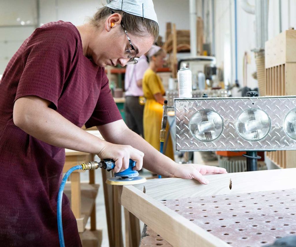 Our furniture is made from solid American hardwoods. Our options include but are not limited to brown maple, cherry, red oak, and quartersawn white oak. See our sample gallery of stain samples.