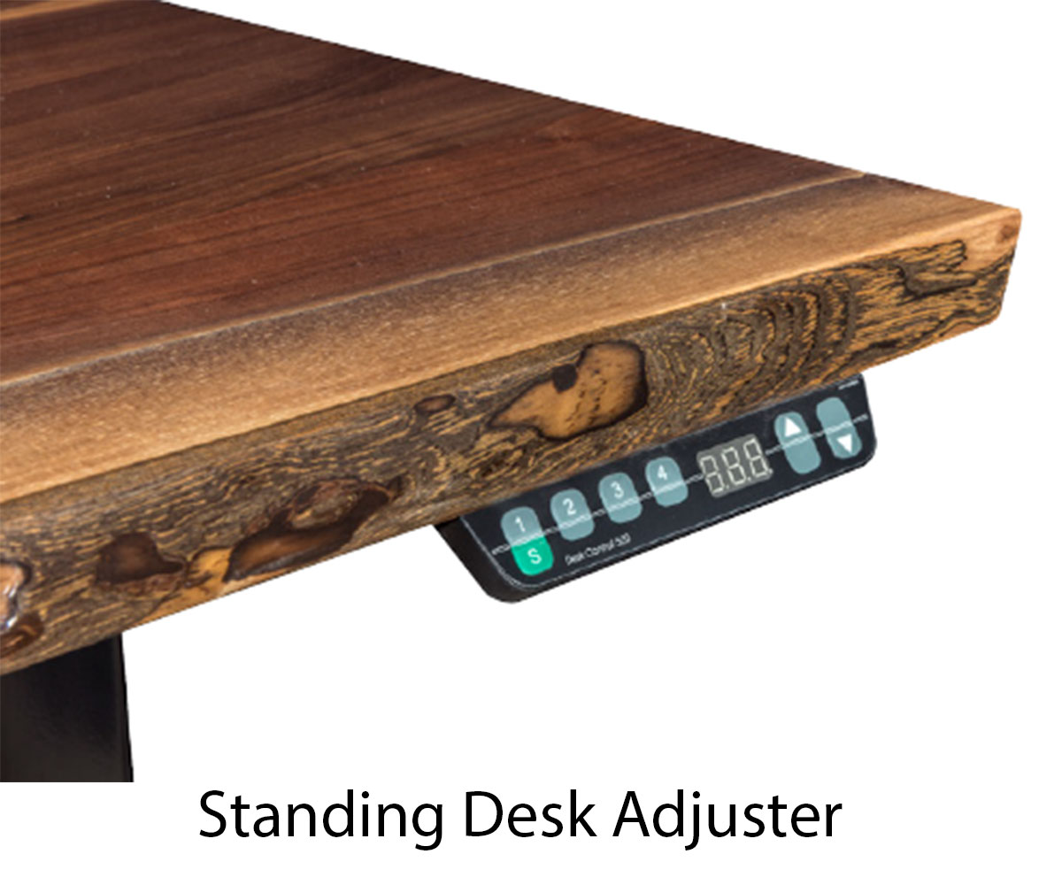Options: • Optional topper (AOT: 51″W x 8″D x 5″H) • Optional keyboard (OKB) • Live edge top • Vertical cable manager