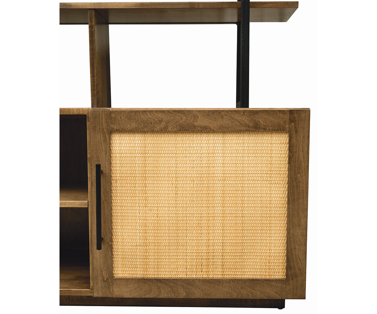 Features: • Cane doors • One adjustable shelf in the base • Four 72″W shelves on the bookcase • Unfinished back