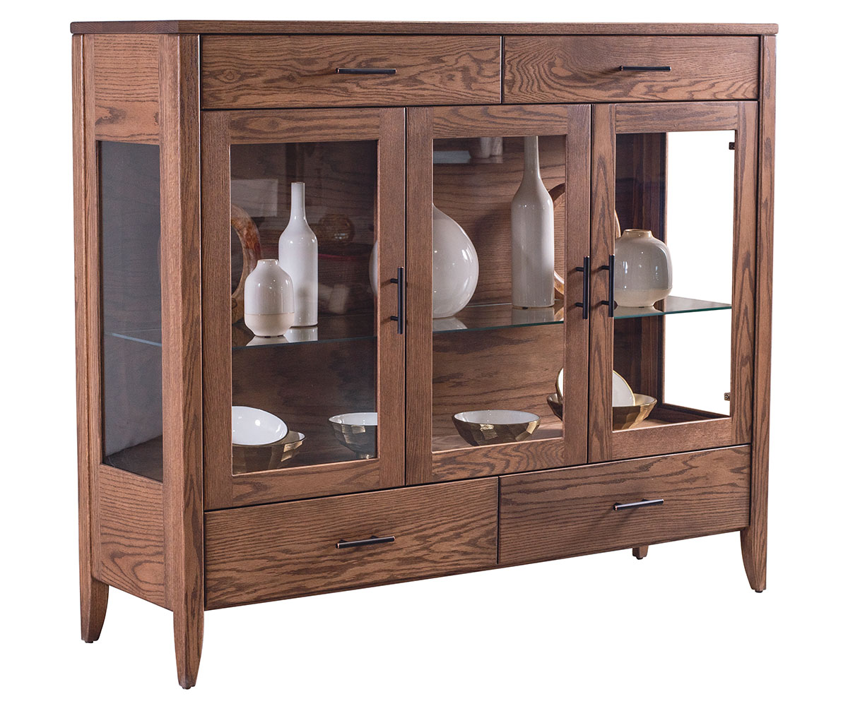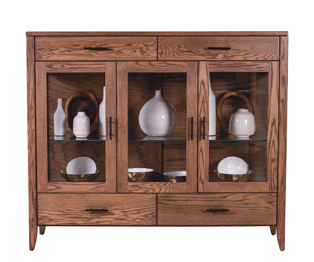 Features • Flat glass doors and sides • One adjustable glass shelf with plate groove • Dovetailed drawers • Full extension side-mount drawer slides