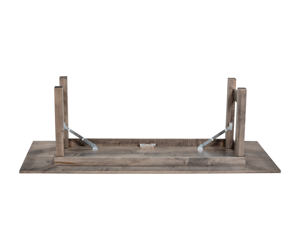 Features: • Solid top; no leaves • Legs fold for easy storage or to move table • Standard 30″H dining height